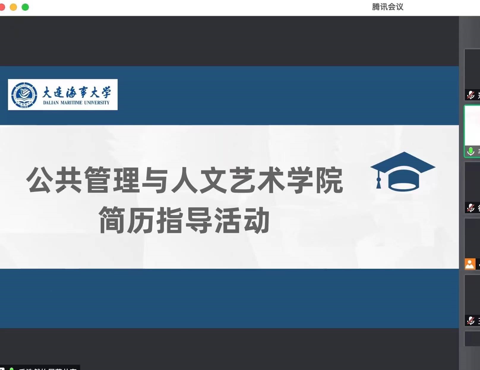 为提高学院学生就业核心竞争力,迈好成功求职的第一步,促进学院学生更高质量就业,7月6日,公共管理与人文艺术学院于线上开展2023届毕业生简历指导活动,活动由指导员焦兴华主持,有求职意愿的2023届毕业生参加活动。