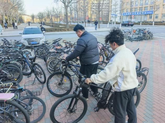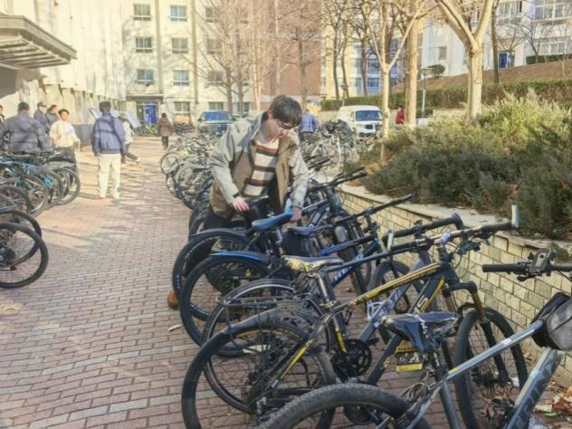 为践行雷锋精神,维护校园公区交通秩序,同学们重点开展整理自行车行动。因校内自行车流量大,在经过寒假假期后,不少同学尚未来得及重新停放自行车,这不仅增大了安全隐患,也不方便人群通行。因此同学们分工协作,抬起侧翻车辆、校准车头朝向,严格遵循“首尾对齐、横竖成线、让道于人”原则,将散乱单车逐一归置划线区域,不仅清除了安全隐患,更让校园主干道重展通畅面貌。