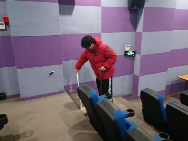 在湖畔书屋电影院,同学们主动开展卫生清洁行动。大家手持清洁工具,对座椅缝隙、地面角落等易积灰区域进行重点清理,仔细擦拭扶手、捡拾杂物,不放过任何一处卫生死角。细致的清扫与整理,不仅让影院环境更加干净温馨,也彰显了人文学子践行志愿精神、守护校园美好空间的青春担当,为每一位观影人营造了舒适惬意的体验,让雷锋精神在细微之处熠熠生辉。