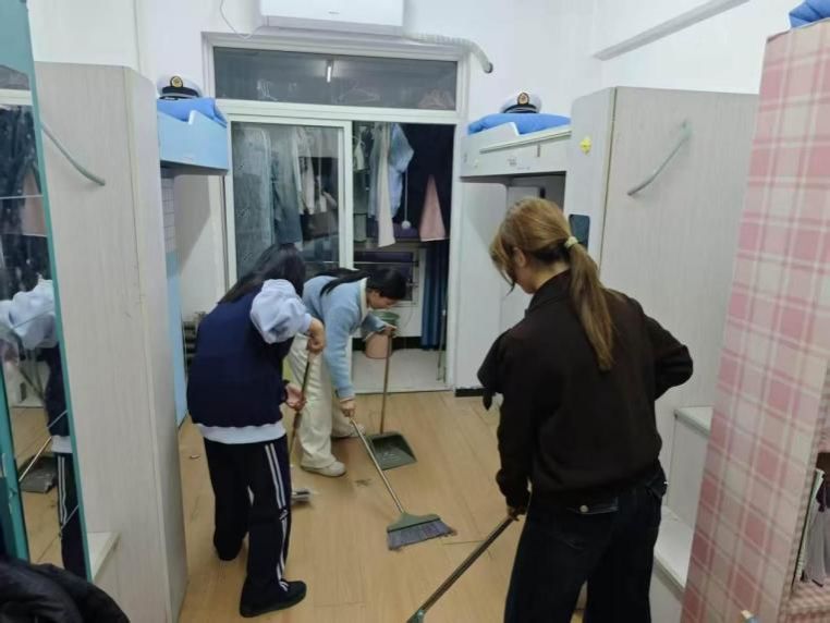 在寝室开展“全员参与、常态养成”活动,在全院范围内开展寝室大扫除专项行动。各班级提前召开动员会议,明确内务标准与工作要求;各寝室细化分工、互帮互助,由优秀寝室示范引领,全面清理卫生死角,规范物品摆放。学生干部全程督导协助,推动寝室环境整体提升,引导学生将劳动习惯融入日常生活,在实践中体悟劳动价值。