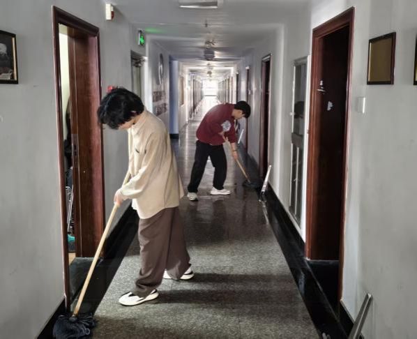 为营造整洁有序、文明和谐的住宿环境,学院持续推进宿舍楼公共区域卫生整治工作。学生们分工协作、细致作业,认真清扫走廊、拖拭地面、擦拭楼梯扶手、清理卫生死角、规整公共杂物,以实际行动维护公共空间整洁,展现了新时代青年学生的责任意识与良好精神风貌。