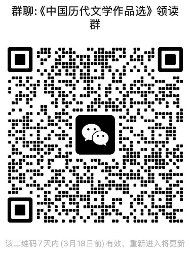 领读本书,旨在带领大家领略中国文学传统里的优秀作品。由于原书篇幅稍夥,计划择要阅读:一诗歌部分:《诗经》选、《楚辞》选、汉魏六朝唐诗选;二诸子散文部分:《论语》选、《孟子》选、《庄子》选;三历史散文部分:《史记》选;四戏剧小说部分:《牡丹亭》选、《桃花扇》选;文学为我们建构的世界,使我们的生命得到一种滋养,得到美和快乐。在这个世界里面,我们有一种更期待的、更向往的精神生活方式。希望和诸位同学一起读书,感受到彼此生命的珍贵和美好,优雅与高贵,不要辜负了生命的丰富的可能性。